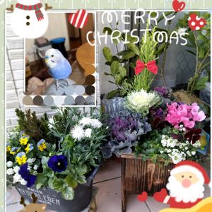 今年最後のインコの日🐦 参加します🐦🎵🎶🐦 娘の膝で寛ぐセキセイインコの クッカ🐦私が近づくとおかぁーしゃんとかおかあさんと呼んでくれます 娘が来るとなっちゃんと呼びます😽💕 今の特技はペットボトルキャップを加えて上から自分のエサ箱の中に落とし入れることです(◍•ᴗ•◍)こんな感じで每日おしゃべりに癒やされてます🐦 右の寄せ植え🪴 お正月用に葉牡丹とシクラメンが入った寄せ植え購入苗が10点も入ってお値打ちでした😽🎶🎵⛄