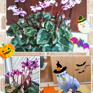 お花屋さんで見つけた シクラメン💗 フェアリーピコ ダブル お持ち帰りしました🌺 ハロウィン🎃 クッカちゃん🐦 魔女に変🎃