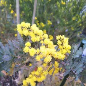今日は黄色で攻めます😄 ミモザ2代目さんに花が咲きました🎉🎶 あ、このコは昨年50cm丈の買ったもの。 本当の2代目(初代の種から)のお披露目は来年かな🤔 後方に見えてる黄色い花は前投稿のゴールデンクラッカーです🤩