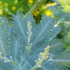 今日のお花 銀葉アカシア💛 2年前にお友達に頂いたものがしっかり大地に根を張りました まだ蕾は固いけどたくさん咲いてくれそうです(*´꒳`*)