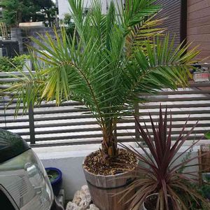 ナツメヤシとワシントンヤシモドキ 庭が狭いから鉢で頑張ります。 誰か育て方のアドバイス下さい❗