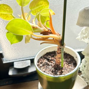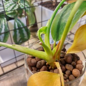 ハイドロカルチャーにしたフィロデンドロン🌿 何か茎が変な形になってるなぁと思ったら…新芽❗️…新芽❓️なんか幹から小さいのが伸びてきて~ってパキラみたいなのではなく、他の枝(?)からこうヌュルゥ~っと新しい葉が出てくる感じ❓️カラテアみたい🍀 そんな喜ばしさもいいけど、まずはすぐ黄色くなった葉をどうにかせねば…水切れかな❓️🤔