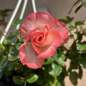 バラ開花が増えてきました🥰 ①ラブリーモア②グリーンアイス ③スイートチャリオット ④つるサマースノー ⑤ピエールドゥロンサールとウィンターマジック、グリーンアイス お迎え時についていたつぼみが全て開花終了後に出たつぼみで初開花したラブリーモア。そろそろ馴染んできたようです。複色のダブルデライトやジュビレ・デュ・プリンス・ドゥ・モナコを連想するような色味で咲いています。 現在開花しているのはミニバラ多めですが、ハイブリッドティー達も芽がよく伸び始めました!