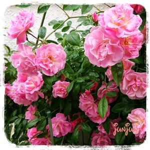もう一枚連投ですみません💦 古株オールドローズ名前?開花 ピエールドゥロンサール クリスティアーナ サマースノー 昨日より美しく😌💓 2枚目💛ミニ薔薇も開花です😉🎶