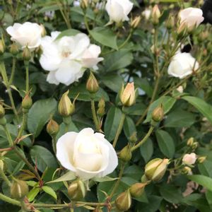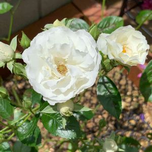 おはようございます•*¨*•.¸¸♬ 今日は風が強すぎ💦 台風💨かと思うくらい(๑°⌓︎°๑) おまけに午後は雨も降る予報なので 折角、咲き揃いそうなバラ🌹が 散ってしまいそう…(´xωx`) 悲しすぎィ〜😭 今日は白バラさん達をUP ✩︎°。⋆︎⸜(ू。•ω•。) 白バラ大好き❤