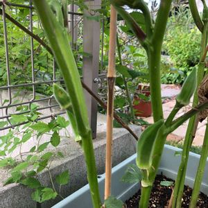 今年の夏野菜は、オクラ、ナス、ピーマン、ししとう、トマト、しそ、バジルを植えました🍅🍆🥬 もう初収穫を迎えたものもあるけれど、オクラはまだ。 あと数日で食べられそうです😋 自宅で作った野菜は不出来ながらもみんな美味しいけれど、採れたてオクラのシャキシャキ感はスーパーで買ったものとの差が本当にすごい。 お花もきれいで病害虫にも無縁、優秀な夏野菜です^ ^