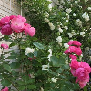 近所のスーパーで500円で買った薔薇。 花もついてなくてヒョロヒョロだったのが、今や1.5mほどの大株に育ち、毎年たくさん咲いてくれます❤️ ただ、名前がわからない(T-T) つぼみの時が淡くピンクで、毎年物凄く伸びるつるバラです。