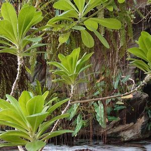 いかにも南国🏝の葉っぱ🌿 からの〜 沖縄の海〜🌊 クサトベラ ですかね❓ 葉っぱにビロード状の毛は 無かったような気が💧 幹に縦の裂け目は無いです🌿高さ1m前後 pic大放出の為 しばらく南国の写真続きます🙇♀️