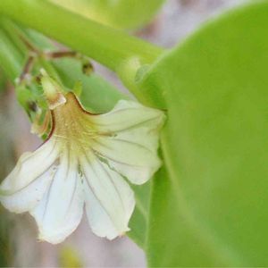 花の作りが面白いようです。 マクロで柱頭部を見ると細かいモヤモヤしたのが見え花びらは5枚で手のようです。