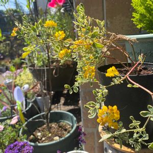 「コロニラ・ヴァレンティナ」✨🌼 斑入りの葉なので「バリエガータ」と言う品種のようです。 可愛い花が今年はたくさん咲いてくれました💛😍 寄せ植えにしていますが、かなり大きくなってきたので植え替えなどしないといけないかなぁ?🪴🤔 マメ科 コロニラ属 花言葉 :「ぬくもり」「上品」「不老不死」