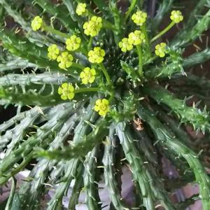 アドロミスクスの花茎に花が咲きました♪ 思ってたより地味な花ですが、これはこれで良いかな(^-^;