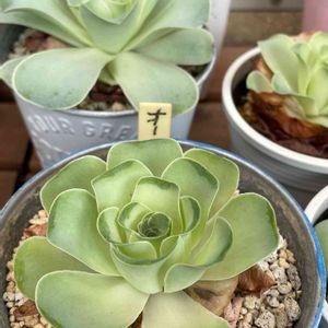 *エケベリア属の名無しさん🌱 1年くらい前に園芸店さんからお迎えしたんです🌱カキコちゃんがよく出て寄植えに使ってます(。-∀-。)これから紅葉してエッジが赤くなって可愛いんですョ♡ 強い多肉さんですが夏の陽射しでストレスがあったのかなぁ。。季節が秋になったら元気出してくれてます♪ 気温17℃最高でも17℃(。-_-。) 空は厚い雲☁️ 風はあまりないので静かですが冷んやりしますョ❕ どんどん寒くなりますね、乾燥してるのでお肌カサカサですw