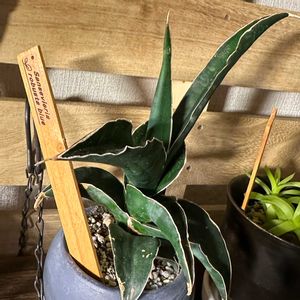 ライフスタイルショップで購入したサンセベリア(サンスベリア)です。横は30cm弱の広がりで葉に厚みがあり、曲がることはなさそうです。サムライドワーフかなとも思ったのですが、店員さんがご存知ではなく、お分かりの方教えていただけると嬉しいです。 よろしくお願いいたします。