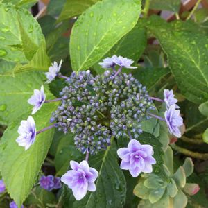 裏庭の紫陽花 雨上がりの紫陽花 左上に🕸蜘蛛の巣が😅