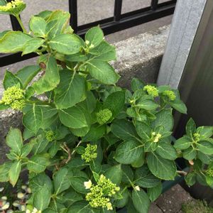 鉢植えの紫陽花 なかなか咲きません 剪定もほぼしてないので形も酷いよ笑