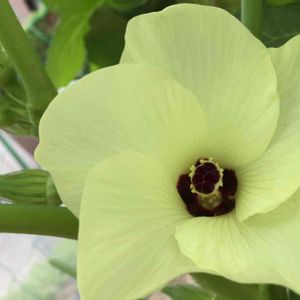 オクラの花‼️ 実家の畑のオクラ ぽんぽん咲いてます
