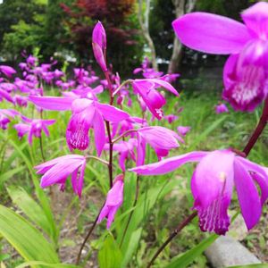 庭の美しい紫蘭(シラン)✨自生ラン 5月から6月には紫蘭が咲き出し、 一面紫色になります。 笹のような葉が特徴です。 去年の6月picより💞