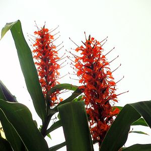日曜ビタミンカラー🎶今年も咲きました、ジンジャーリリーです😊品種はわからなくなりましたが、ニクイロシュクシャの園芸品種だと思います。とても背が高くなり、オレンジ色の長い穂を立てます。白いジンジャーリリーのような香りが無いのが残念です😢