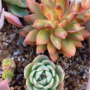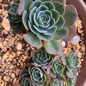 植え替えした七福神が根付いたようです😃 手前の子は一つの株なんだけど 何人兄弟なんだろなー😘😆 今年も夏が越せたので 冬越し頑張ろう❤️