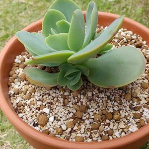 ポイポイプランターの手前の子。 葉っぱを挿したら順調に育っていますが名前が?? わかる方教えてください🙏 奥のジュノンボーイ葉挿しは ぐんぐん育って 残ってる親葉までプリプリになってるんだけど そんなことある??(笑)