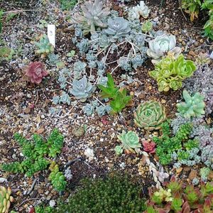 ポスト前の多肉花壇です😁 つぶつぶもりもりかわいい😆 消えかけたベッラディンベルノが復活してきてる〰️😁