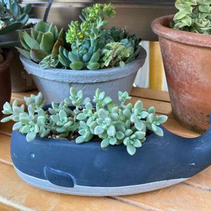 去年オマケにもらった姫秋麗が大きくなったので、ポイポイ鉢から卒業してもらいました。 ここでクジラ鉢(中)の出番。 案外姫秋麗との相性、良いんじゃな〜い? (๑⁼̴̤̆ꈊ⁼̴̤̆)✧