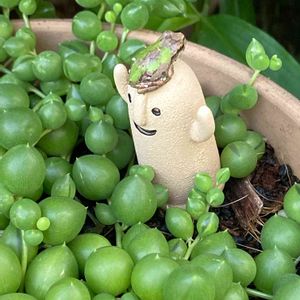 先月お迎えしたグリーンネックレス。 あっという間に倍以上に増えております。 ギッチリガッチリと根っこが張ってて、取るに取れません。 秋になったら、寄せ植えに使えるかなぁ〜。 (๑ ˃̵͈́∀˂̵͈̀ )ウヘヘッ パープルヘイズの守り神にはグリネの守り神にチェンジしてもらって、見守ってもらってます。 パープルヘイズ同様、モコモコと増やしてくれる事でしょう(-人-)ナムー