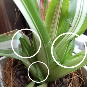 💚🤍新芽発見🤍💚 少し前から、親株の元気がなくなり、心配でした。 そうしたら、葉の間から赤ちゃん達が! 原因はそれなのかな⁉️ 母子ともに、元気に育ってほしいです😓 パイナップル科 グズマニア属 アイスクリーム🍦