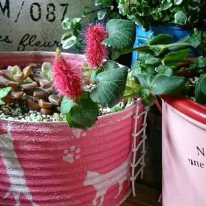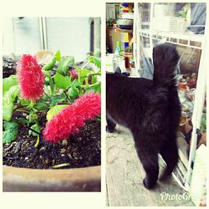 キャットテイル。 猫のしっぽみたいなふわふわ♥もこもこのあれですよ( ´∀`)ノ あまりの可愛さに以前買ったんだけど…届いた時には肝心の可愛いしっぽは黒ずんで、もう花終わってる(´Д`|||)! 色々調べたんだけど、いまいち育て方がわからなくて、とりあえず終わった花の部分をチョッキンして様子を見ること約40日💦 しっぽが生えてきて、その周りに赤いふさふさが付いてきた~\(///∇///)/ こ…これは\♥✴/ 咲いてくれるかもしれない(*´∀`人)♪
