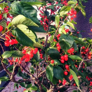 美味しそうです❣️😆💕 前picのお母さんです🍒🍒🍒 鉢植えから下に根を下ろしてしまいました😆💦💦💦 終の住処となるのでしょうか😱 昨年のです🥰💕😋 ありがとうございます😊