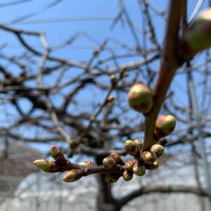 暖かい日が続いてます サクランボの花の蕾も色付いてきました(˘⌣˘)