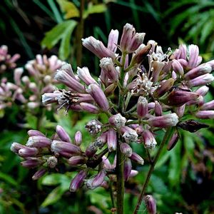 ヤブレガサ(破れ傘) *キク科ヤブレガサ属 花期は7〜10月 本州〜九州の山地の林下などに生える。 今年も咲き出しました。柱頭が反曲してくるりんがかわいいですネ 名前は、芽吹くときの様子がやぶかた傘↘️のように見えることから! 宮城県大衡村 昭和万葉の森