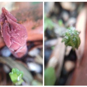 山野草が動き始めました🌱 お気に入りの亀甲斑入りヤブレガサ、日に日に傘が開いていく様子がたまりません😍またあの美しい亀甲斑を見せておくれ😆