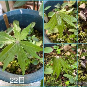 ヤブレガサ 芽生えると成長早いけど 鉢植えなので、大きくなってもこれくらいです。