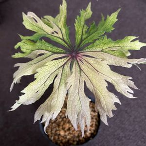 室内管理の山野草ブラザーズ🍀 ヤブレガサはてっぺんに地味〜なお花が咲きました(写ってないけど)。この葉っぱかっこよすぎ!たまらない😍 ユキモチソウ、1年ぶりのコンニチワ!すごく前のめりだな😂下部の葉っぱがなかなか開きません。 八角蓮は初めての2枚め✨1枚め同様、日に日に広がっています。いつか花を拝みたい。 どれもかなりの個性派。地植えしたいのに適所がないんだよなぁ…って毎年言ってる😅うん、もう鉢で行こ!