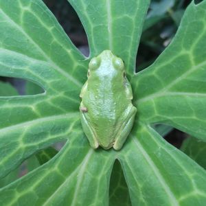 ヤブレガサでアマガエルちゃん🐸が休んでいました。 ピッタリはまってます(笑)