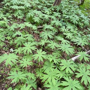 No.1287 ヤブレガサ(破れ傘) キク科ヤブレガサ属 その2 ヤブレガサの大群落🤣 こんなのがピョンピョン跳ねてきたら、ビックリしちゃうよ😅 この頃の若芽は山菜となりますが、私は食べたことがありません☺️ 7月頃になると、茎の頂に円錐花序の白い多数の花を付けます🎵 やぶれがさむらがり生いぬ梅雨の中 水原秋桜子