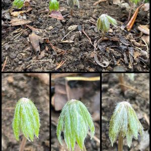 リハビリ散歩@花之江の郷 3/29 地面からニョキニョキといっぱい出てきてます。 「ヤブレガサ」の新芽ですね。ここから足が出て目と足と舌が出てきたら、お化け傘ですよね😅 人気の山菜で、この状態でもいいし、もうちと大きくなって葉が開く前くらいまで食べれます😋