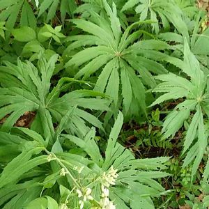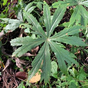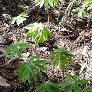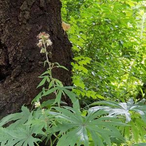 春、山地の木陰から葉が出てくるき、 破れた傘のような形になるのが 名の由来です。 ですが、10日間ほどで葉は広がってしまいます。 ユニークな葉ですね。