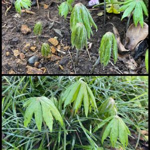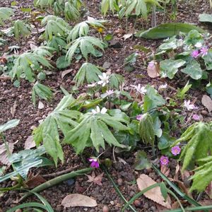 何年か前に友人から貰った一人静と破れ傘 芽生えて来たばかりですが、芽生えたら成長著しく驚きます。毎日見なくては。