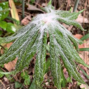 【ヤブレガサ】《キク科》 若葉が綿毛に覆われて愛らしく? 名前のとおり、破れた傘のような形です。 🏷木曜モフモフに参加します。 2021.3.14