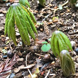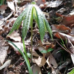 里山を歩いてみたら・・・-⑤ ヤブレガサ ☂️☘ (唐傘草) 名前は芽出しの頃の見た目から😊 若葉は食用になるそうです🥢