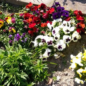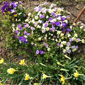 サカタのタネ メドレーの花壇 よく咲くスミレ レモネード が最後の一咲 ペチュニアのビューティカルが パールワイト、レッドメイプル、フレンチバニラ、シナモン と並んでて見えてないところにボルドーがとってもきれい 雨が降る事を考えると断然鉢植えなのですが、鉢が増えすぎると管理できないので半分を花壇に地植え I hope this flower will bloom for a long time.