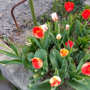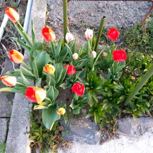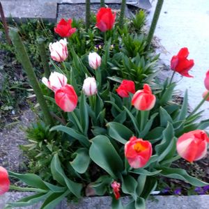 我が家のチューリップ 有終の美 バイカラーの赤白と バイカラーの赤黄
