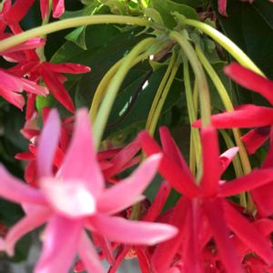 シクンシ(使君子) お祝いのときにマイクにつける紅白リボンみたいだなぁと 前を通りながら見てた子。。。 人ン家なので 慌てて撮ってきちゃったから キレイに撮ってあげられていない、、、💦 香りが良いとのことなので こんどは、 嗅ぐ👃ミッションだ!♪