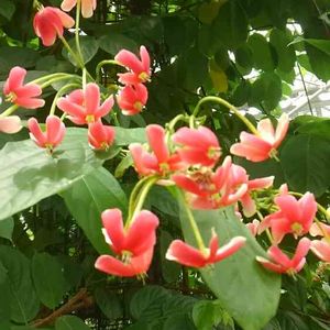 名前が分かる方、教えてください。 検索したけど名前が分かりませーん。😥 蔓性でピンクの花がキレイです。 ☘️「 シクンシ 」と判明しました! @レンレンさん、ありがとうござます。😊