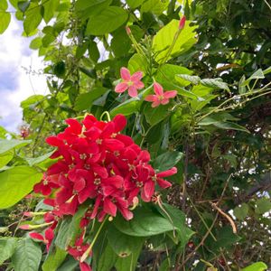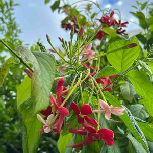 シクンシ (使君子) 別名 インドシクンシ 花言葉「無邪気」 🏷ちっちゃいものクラブ 参加させて頂きます 花は咲き始めが白、ピンク、赤へと変化する香りのよい植物(桃のような香り)