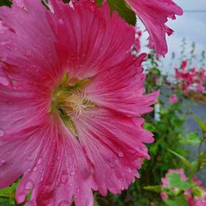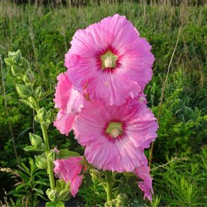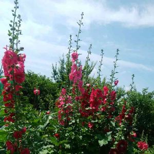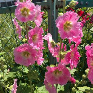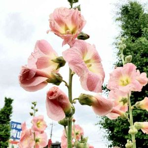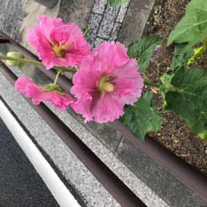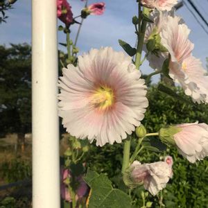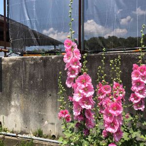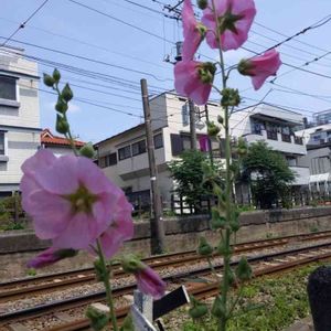 鶴見川 タチアオイ(立葵、シノニム)、アオイ科アオイ属の多年草 🌼花言葉 「大望」「野心」「豊かな実り」