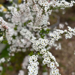 お疲れさまです😊 青空に枝垂れて咲いたユキヤナギ🍃✨満開✧︎*。