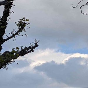 庭の小屋の向こうのお隣との境界に、欅の古木があります。葉がすっかり落ち、今その洞に暮らすアオゲラがコンコンする姿も見えるようになりました。…用心深いらしくなかなか写す事が出来ませんが。…体長30cm弱もあるので、忙しないヤマガラのコンコンとは又違い、落ち着いた?コンコンです。色は暗緑色、頭が赤いのがトレードマーク、よく響く声でピョーピョーと鳴きます。 隣のヤマコウバシは写真ではオレンジ色に見えていますが、実際は大分白茶けて来ています。 今日も風のある晴れ。…空の雲はふんわり。 🏷雲仲間